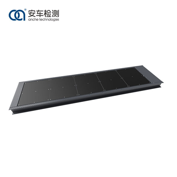 Nigbati ọkọ ba n ṣiṣẹ lori oluyẹwo idaduro ati pe a lo awọn idaduro ni agbara, ija laarin awọn kẹkẹ ati awo naa nfa awo ti o ni ẹru lati ṣe ina agbara ẹdọfu lori sensọ agbara braking. Afara igara sensọ faragba abuku rirọ, ati afara igara di aitunwọnsi, ti njade foliteji aipewọn. Foliteji yii jẹ laini ni ibatan si ibajẹ ti afara igara, ati abuku ti afara naa tun jẹ ibatan laini ibatan si agbara ikọlu braking ti o gba. Eto iṣakoso ṣe iyipada awọn ifihan agbara itanna ti a gba sinu awọn ifihan agbara braking ti o da lori abuda yii lati wiwọn agbara braking.