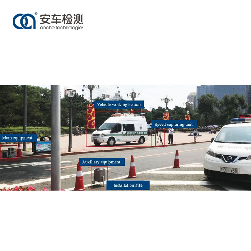 Eto idanwo isakoṣo latọna jijin to ṣee gbe ni orisun ina ati ẹyọ itupalẹ, ẹyọ iṣipopada iṣipopada igun ọtun, eto imudara iyara / isare, eto idanimọ ọkọ, eto gbigbe data, eto meteorological ati ẹyọ iṣiṣẹ kan, eyiti o le jẹ latọna jijin dari nipasẹ nẹtiwọki.
